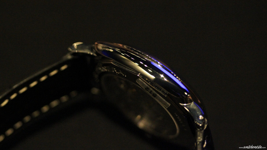 The PAM512 is a polished steel "1940" Radiomir of 42mm. From the outset it is surprising to see a new Panerai case directly available in XS size (the "1940" case has been presented in 47mm and Limited Series in 2012: PAM398 and 399).