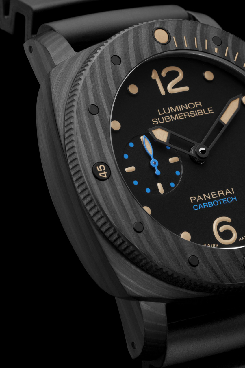 Every example of the new Luminor Submersible 1950 CarbotechTM is unique and different from all the others thanks to the surprising technical and aesthetic characteristics of carbotech, the new composite material which is making its debut in haute horlogerie with Officine Panerai.